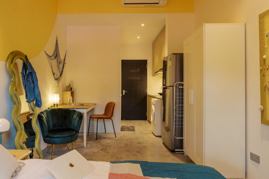 • Each studio or room comes fully-furnished
